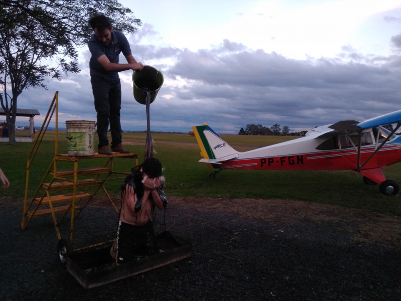 Para marcar esta conquista, o aluno recebeu dos seus instrutores André Nickel e Gabriel Lando Pizarro um banho de óleo, como manda a tradição.